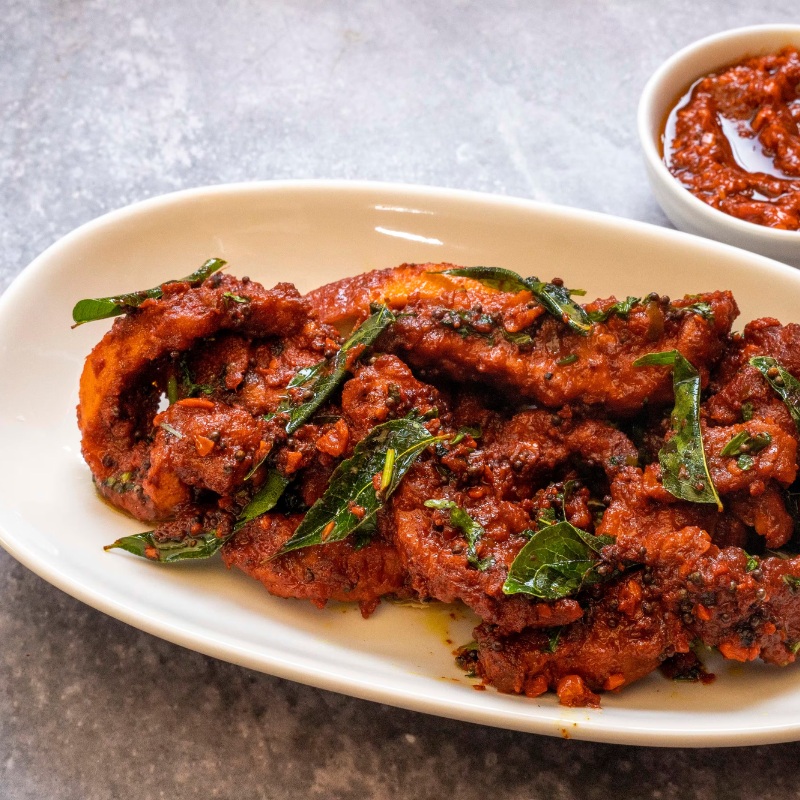A very popular Hyderabadi street food made of boneless chicken marinated in buttermilk, ginger-garlic paste and other Indian spices. This spicy marinated goodness is then deep fried and ready to be devoured.